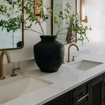 This custom primary bathroom remodel in Bloomfield Hills, Michigan was designed to create a refined, spa-like retreat with timeless materials and elevated architectural details. As a licensed general contractor serving Bloomfield Hills and the greater Oakland County area, Costello & Co Construction transformed this space with custom cabinetry, a reimagined layout, and high-quality finishes tailored for everyday comfort and long-term value. The dark-stained vanity with fluted detailing provides rich contrast against bright quartz countertops and polished brass fixtures. A frameless glass shower featuring marble tile surrounds adds texture and natural light, while modern sconces and layered finishes introduce warmth and sophistication. This Bloomfield Hills bathroom renovation demonstrates how thoughtful design and expert craftsmanship can enhance functionality, improve flow, and elevate overall home value.