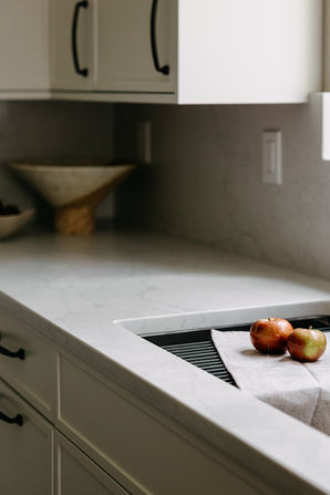 This custom kitchen remodel in Beverly Hills, Michigan was designed to create a bright, functional space that balances timeless style with everyday practicality. As a licensed general contractor serving Oakland County, Costello & Co Construction transformed this kitchen with a reimagined layout, custom cabinetry, and high-performance finishes built to support modern family living. Crisp white cabinetry paired with warm wood accents and matte black hardware brings depth and contrast, while the oversized island provides additional seating, storage, and prep space. A neutral tile backsplash and durable quartz countertops create a clean, cohesive aesthetic that enhances natural light throughout the space. This Beverly Hills kitchen renovation showcases how thoughtful design and expert craftsmanship can dramatically improve both workflow and long-term home value.